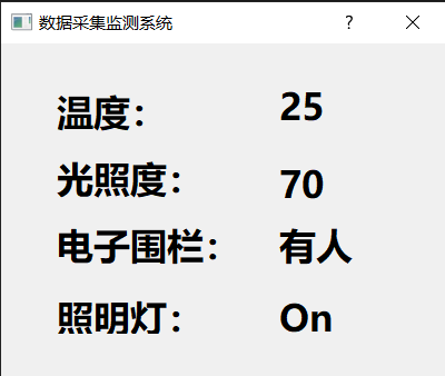 5.通过调用物联网云服务系统API接口(详见物联网云服务系统API接口概览 – “http://192.168.0.138/doc/api/”),获取“物联网云服务系统系统”中选手个人账户下已建立的传感器:温湿度(C-Q3)和光照度(C-Q3)、电子围栏(A-Q1激光对射)、照明灯(C-Q3常亮绿灯),每5秒采集一次云服务系统最新数据,然后刷新UI运行界面数据。