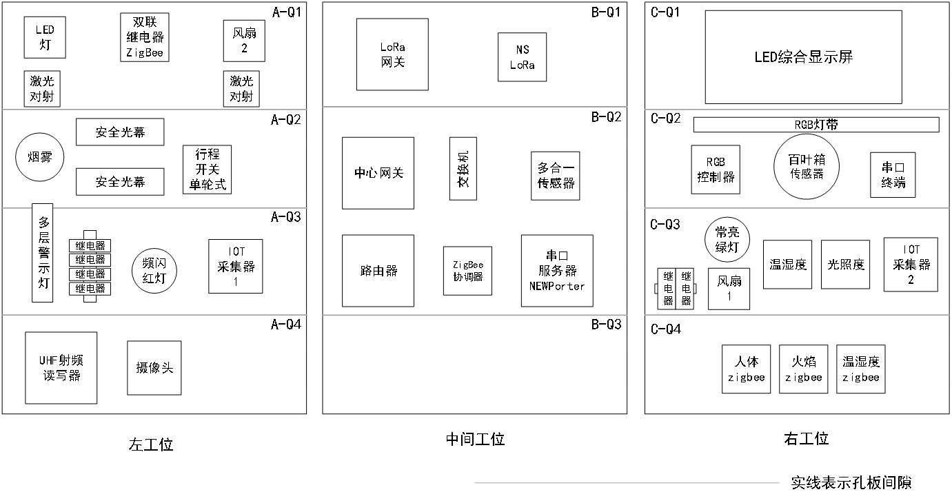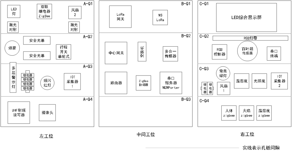 2.要求A-Q1区域中的激光对射模组和A-Q2、A-Q3区域中的设备通过A-Q3区域中的IoT采集器1实现数据通讯与控制。
