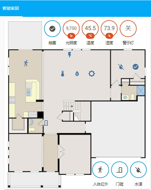 3.要求程序每隔5秒,通过串口读取水浸传感器的监测信号。默认状态下显示正常水位背景图,当水浸传感器探头浸没水中触发报警信号时,显示警戒水位背景图。