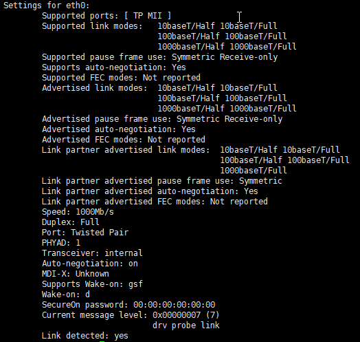 8.命令行查询Ubuntu虚拟机网卡的工作状态,查询结果如图: