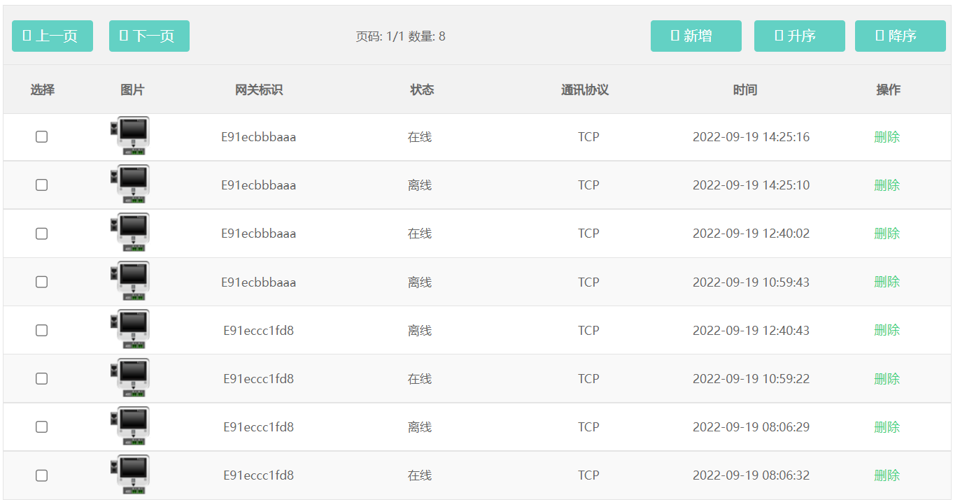 1.用例1:”网关在线记录-不全.rp“底图上已经添加图中8条数据的list,要求正常显示出来。