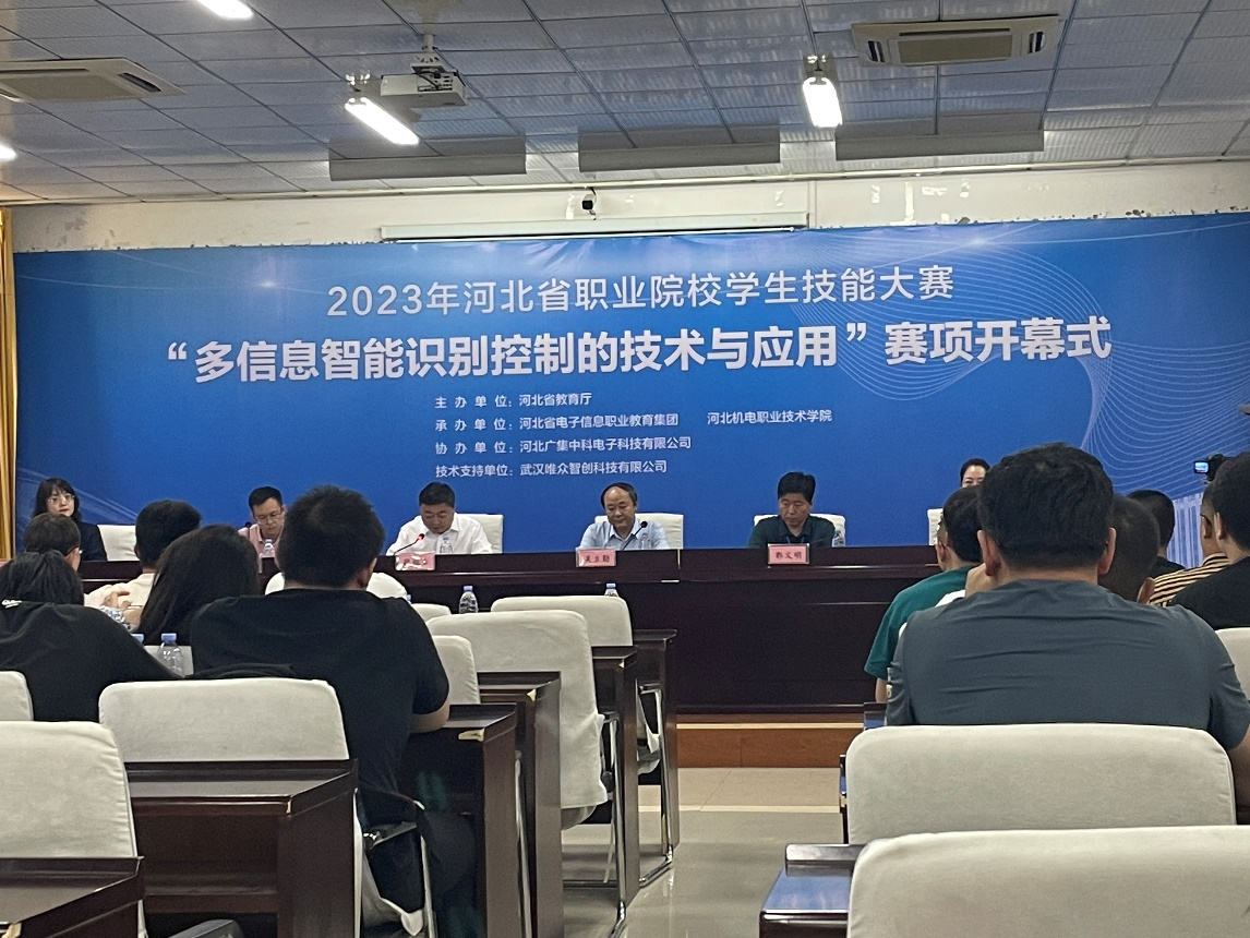 2023年6月14日,2023河北省职业院校学生技能大赛(高职组)“多信息智能识别控制的技术与应用”赛项在河北机电职业技术学院拉开帷幕。河北机电职业技术学院副院长张能云、河北电子信息职业教育集团副理事长吴立勋、河北机电职业技术学院信息工程系党总支书记郭义明、河北机电职业技术学院信息工程系主任马文静、赛项裁判长韩明、河北广集中科电子科技有限公司总经理李艳美出席了赛项开幕式。