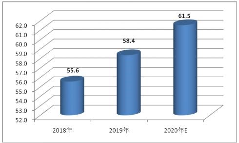 综合布线系统近几年的市场发展一直稳步向前。根据《中国智能建筑行业发展报告》(2013-2018)数据显示,我国”十一五”期间,中国的建筑业一直保持着20%以上,每年的建筑智能化投资大约在4000亿元。我国综合布线行业生产规模近年来以5%左右的同比增长速度增加,2019年综合布线行业产能为58.4亿元,预计2020年达到61.5亿元。