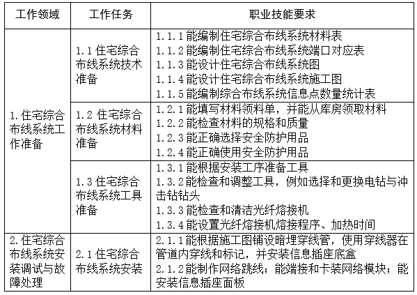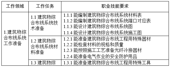 表 1 综合布线系统安装与维护职业技能等级要求(初级)