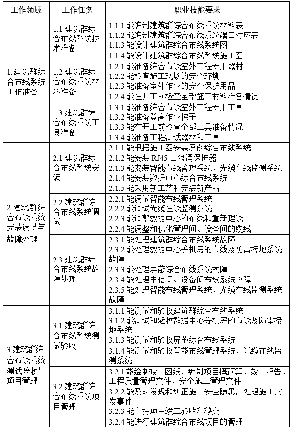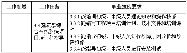 表 3 综合布线系统安装与维护职业技能等级要求(高级)