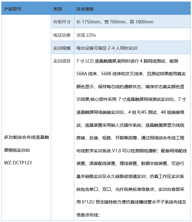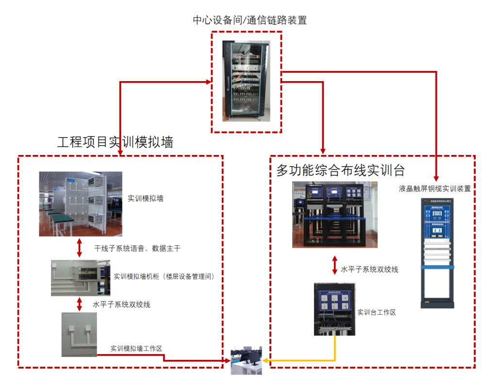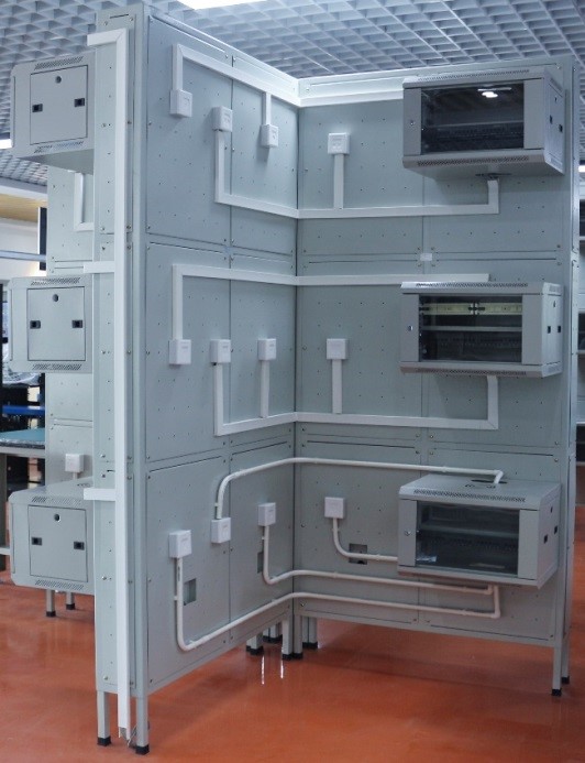 3)能够模拟三层楼宇结构、结合配套机柜,可模拟综合布线系统七大子系统真实工程环境