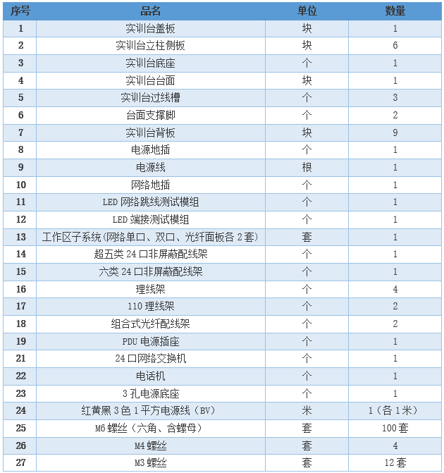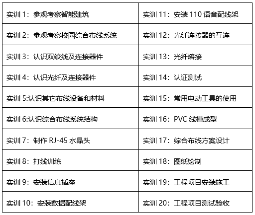 - 综合布线课程遵循国际项目标准,提供比实验室中更灵活的方式进行实训仿真。