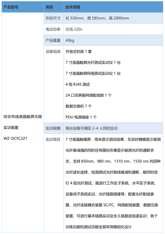 4)结合唯众其它实训设备,能够模拟各类双绞线、室内外光纤敷设、链路、端接测试实训