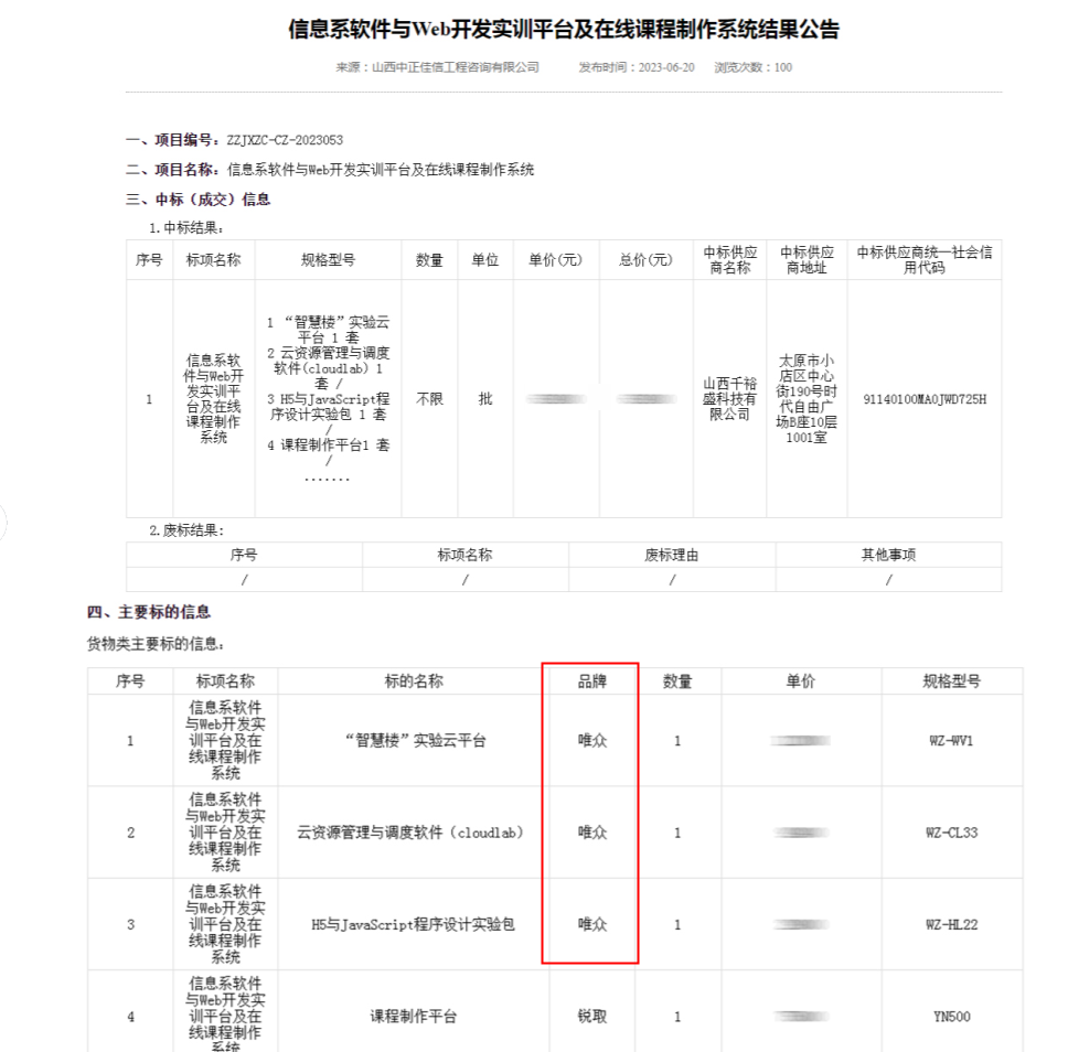 近日,唯众与合作伙伴共同携手中标长治职业技术学院信息系软件与Web开发实训平台及在线课程制作系统项目。此次信息系软件与Web开发实训平台的中标有助于推动学院个性化教学,提升学生的兴趣和潜力,为社会培养高素质的复合型人才。