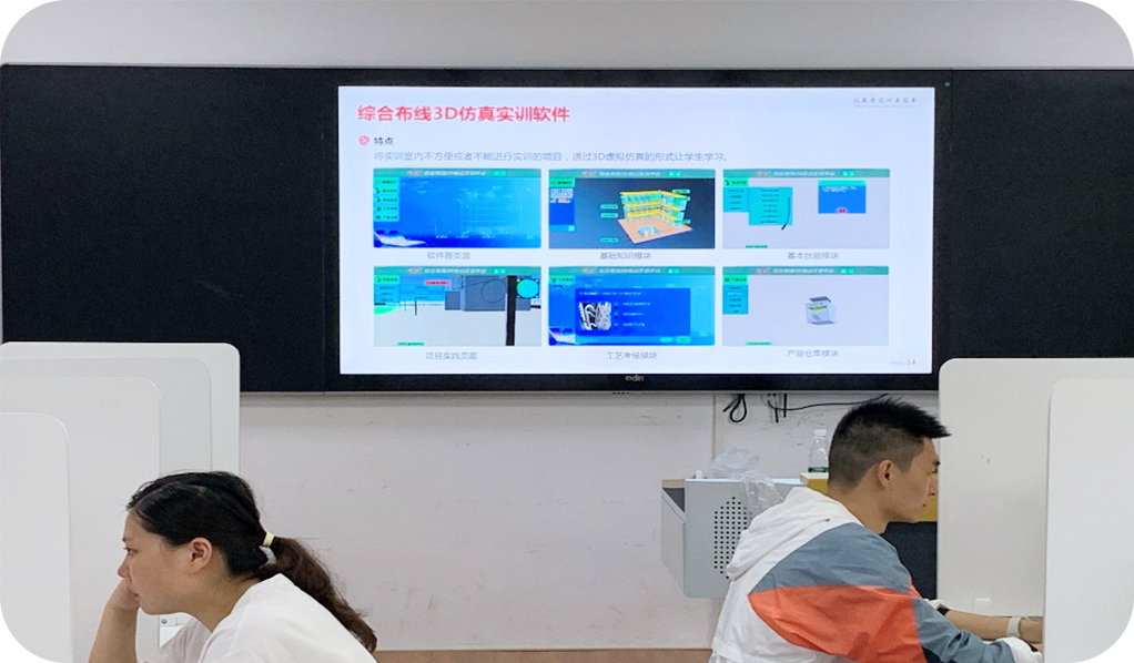 唯众综合布线利用3D技术将布线中的大场景进行微缩,并与项目应用实践进行有效衔接,让学生产生身临其境般的体验。老师们可利用唯众云打通线上线下、营造教学课堂与课外的混合教学模式,同时利用唯众IT极简平台、工具、丰富的资源模板,将知识点融入教学。