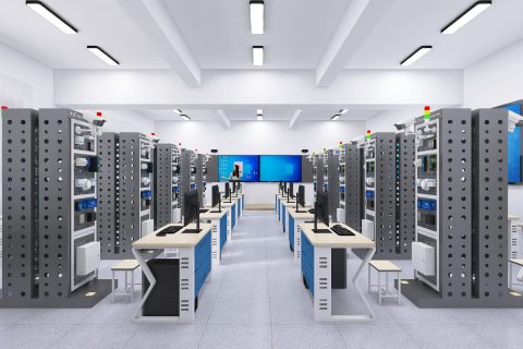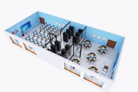 UPS 电源、PC电脑、标准机柜、多媒体讲台、桌椅、摄像机(监控)、录像机、多媒体音箱、智慧黑板、实训室基础改造装修、立式空调等。