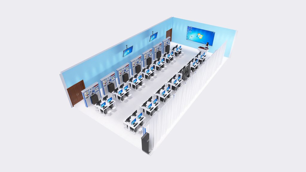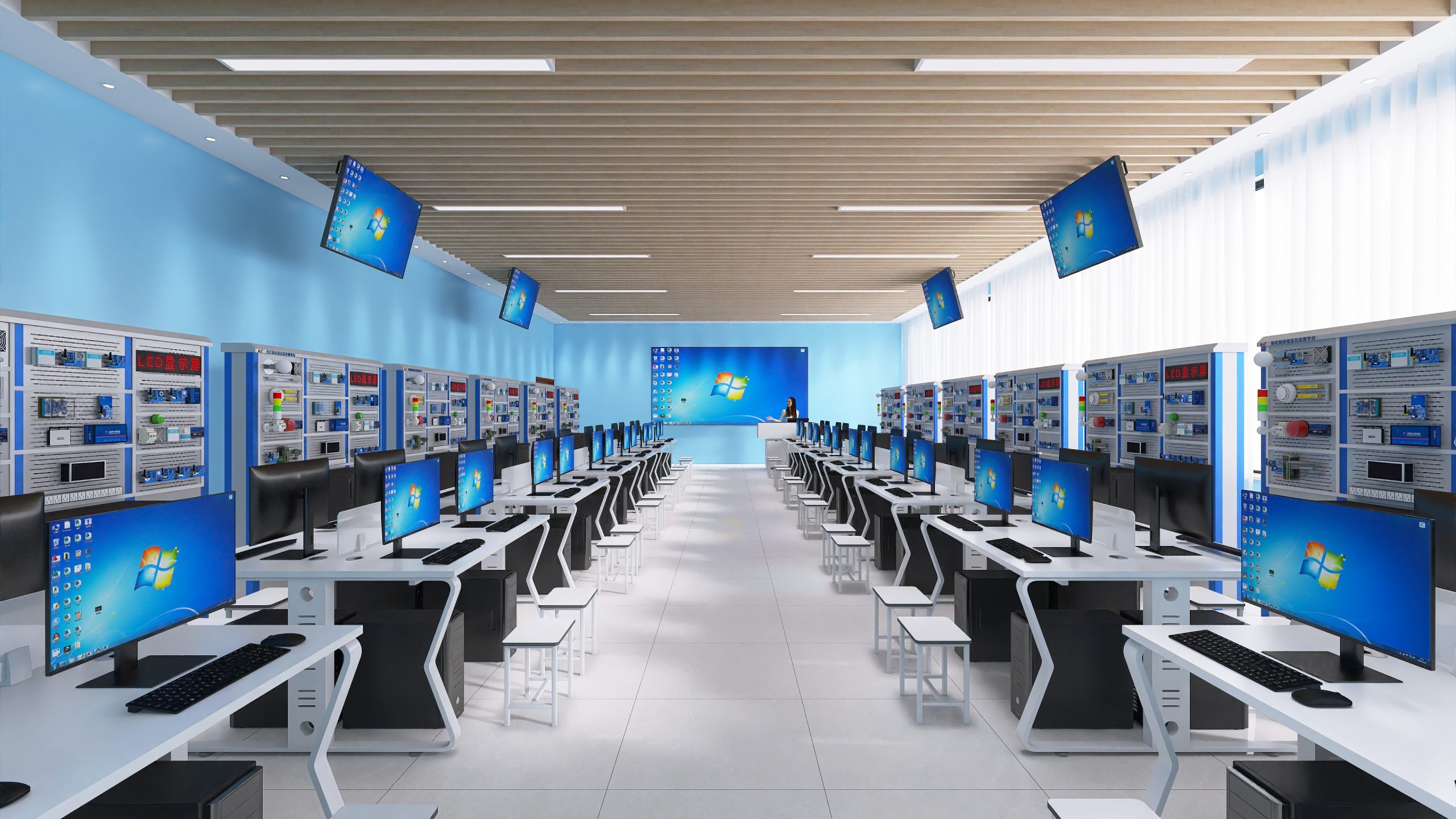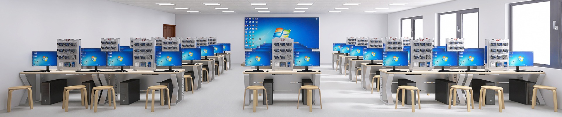 纳米智慧互动黑板、实训终端、视频监控、硬盘录像机、全千兆48口二层交换机、标准机柜、路由器、打印机、收纳柜、实训桌椅、实训室文化布置及系统集成。