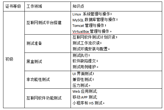 互联网软件测试职业技能等级证书