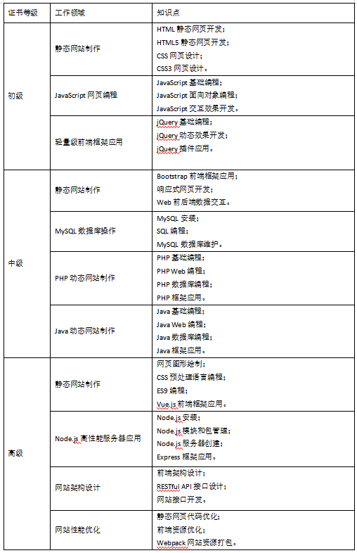 Web前端开发职业技能等级标准
