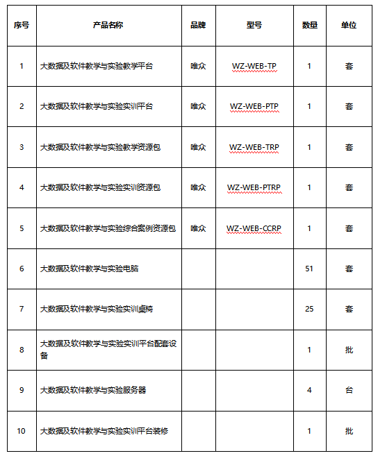 五、大数据及软件教学与实验实训平台方案清单