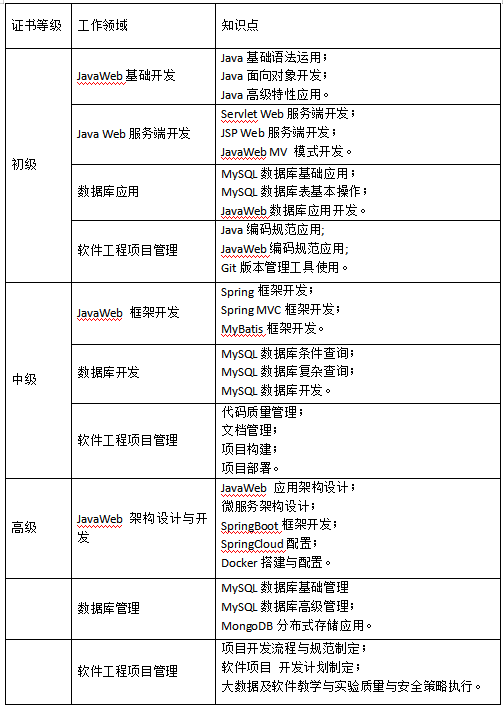 JavaWeb应用开发职业技能等级证书