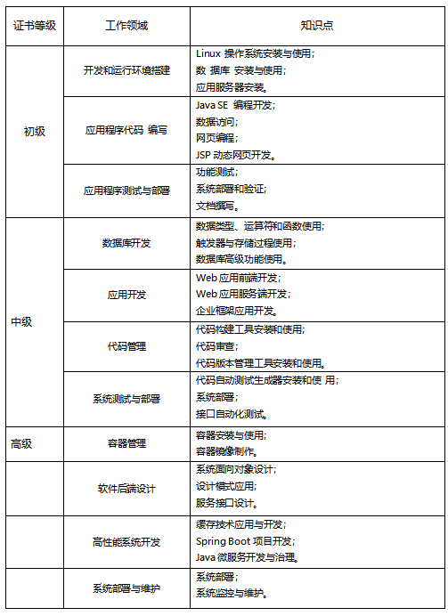 Java应用开发职业技能等级证书