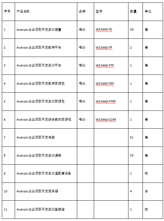 五、Android企业项目开发实训室方案清单