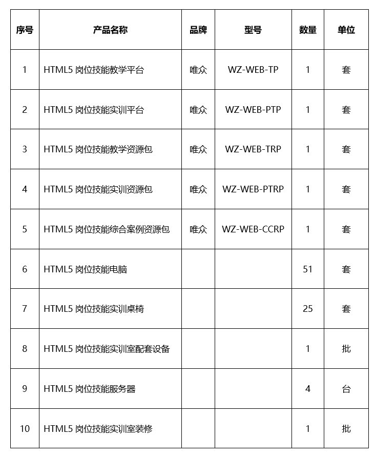 五、HTML5岗位技能实训室方案清单