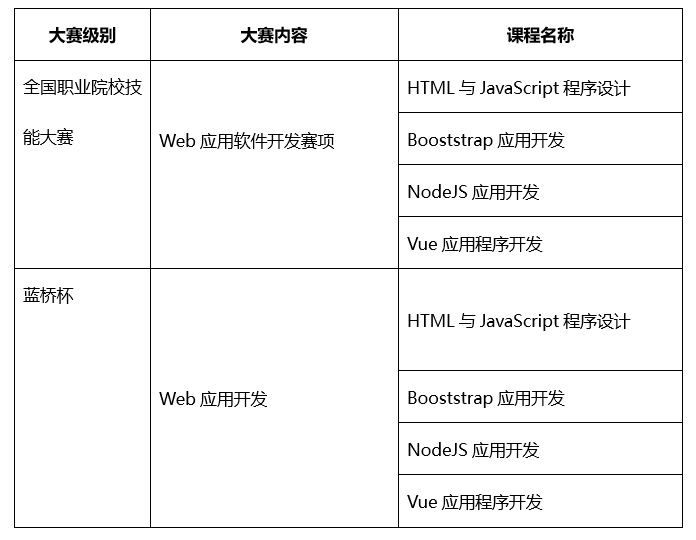 HTML5岗位技能教学资源包包含专业基础课程: 计算机应用基础、静态网页设计与制作、C语言程序设计、数据结构、HTML5 + CSS3 Web 前端开发技术、计算机专业英语等。专业核心课程:HTMI5 与 JavaSeript 程序设计、UI 设计基础、美学基础、Bootstrap 应用开发、NodeJS 应用开发、Vue 应用程序开发、Web 前端综合实战等。