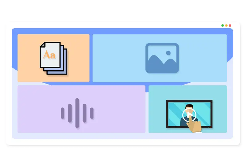 2. 集成多媒体材料编辑工具,可在线编辑、剪辑文字、图片、音频和视频,无需跳转到其他工具,实现一站式制作。支持批量导入素材。