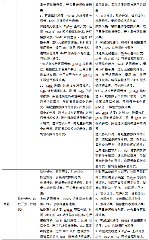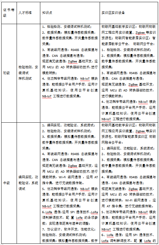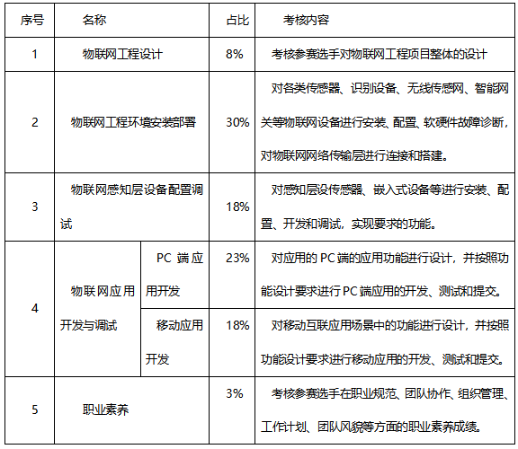 从实际教学情况与人才培养计划为出发点,贯彻物联网安装调试员技能等级标准,充分考虑物联网安装调试员从业人员的职业发展路径与成长路径,以职业素养、职业技能、知识水平为主要框架结构,设计了物联网安装调试员技能等级考试内容,以满足物联网安装调试员岗位的人才培养规格,畅通物联网安装调试领域复合型技术技能成长通道。