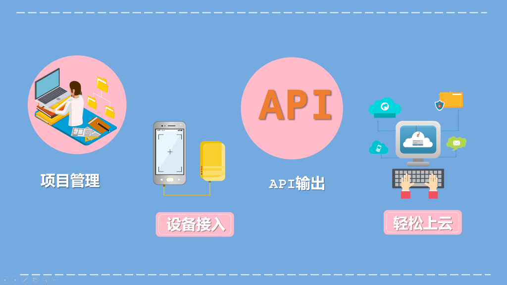 第二,平台提供API标准输出 平台提供二次开发统一数据格式标准,简单,不限开发语言,以便学生通过云平台提供的统一API接口进行数据的采集、分析和设备的监测控制快速开发属于自己的物联网应用程序。