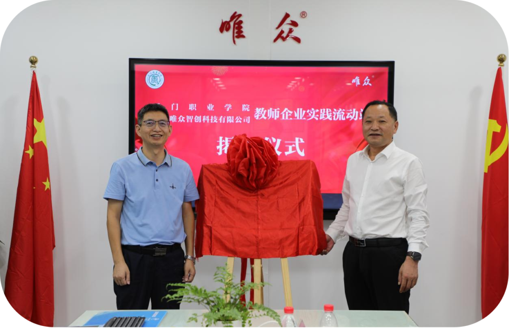 掌声雷动,天门职业学院校长熊安峰和武汉唯众智创科技有限公司董事长辜渝傧进行揭牌。