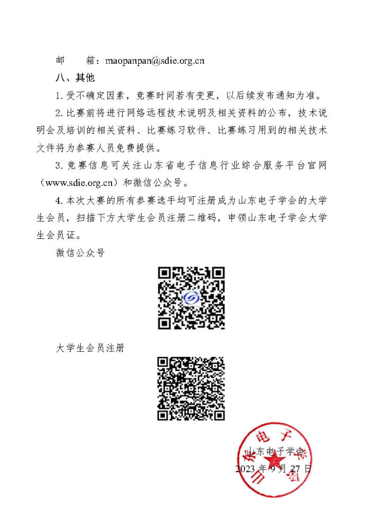 3.竞赛信息可关注山东省电子信息行业综合服务平台官网 (www.sdie.org.cn)和微信公众号。