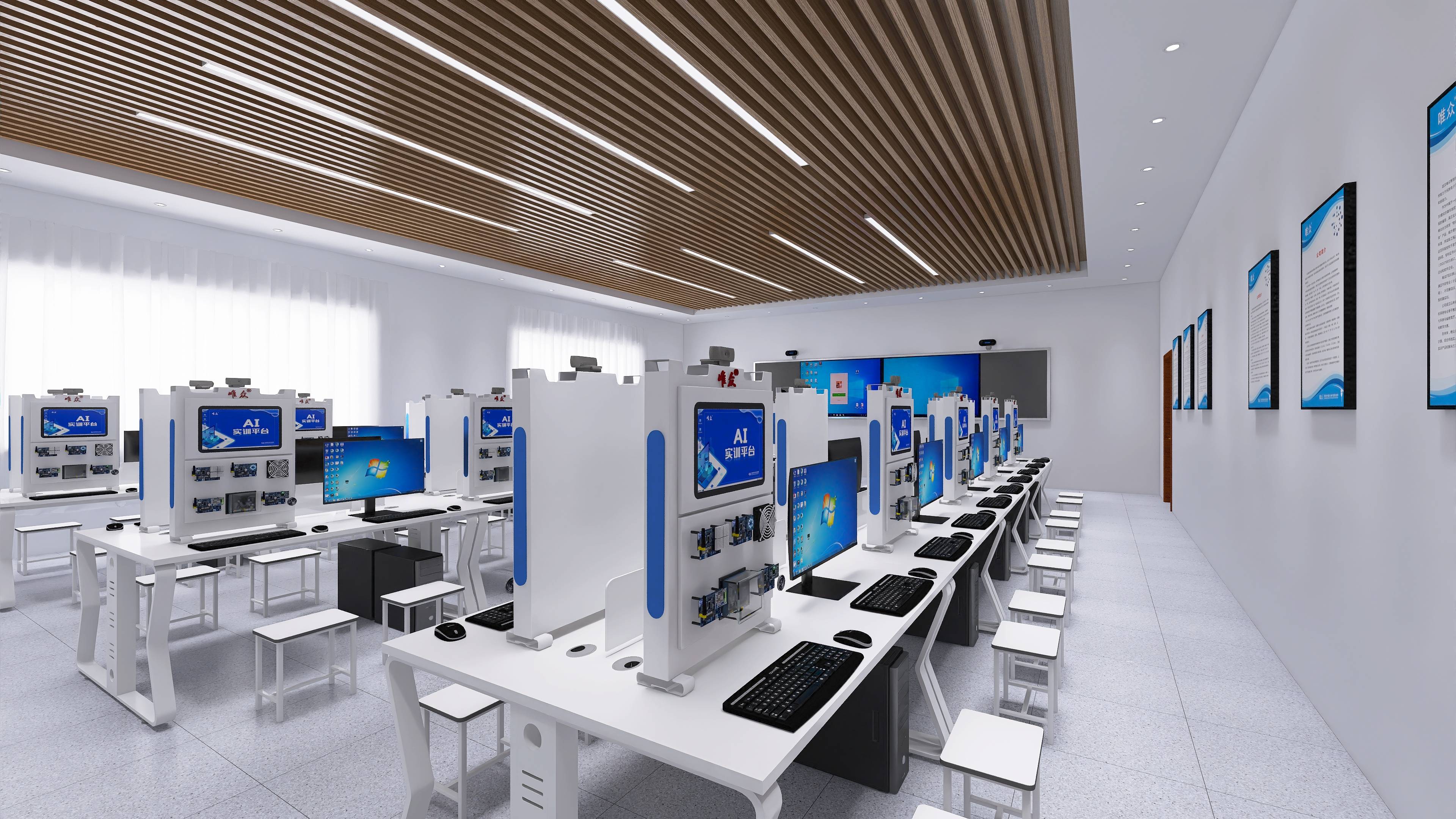 搭建人工智能实训室具有重要意义:提高人工智能实践能力,人工智能是一门非常实际的学科,仅仅停留在理论学习是不够的,必须通过大量的实践才能真正掌握。实训室可以提供模拟场景,让学生通过亲身实践来运用所学知识,提高实际解决问题的能力。培养系统思维能力,人工智能系统涉及多个学科领域,需要学生具备整合知识的系统思维能力。实训室可以设置综合性练习,让学生全面运用知识构建解决方案,培养系统思维能力。引导团队协作精神,实训室可以组织团队项目,让学生互相合作,完成模型搭建、系统开发等任务。这可以培养学生的团队合作精神。创建沉浸式学习环境,实训室着重实际操作,可以创造沉浸式的学习环境,充分激发学生的学习兴趣,主动探索热情。帮助学生展示项目作品,学生可以在实训室开发作品,然后在开放日等日子对外展示,这有利于展示学生的学习成果。