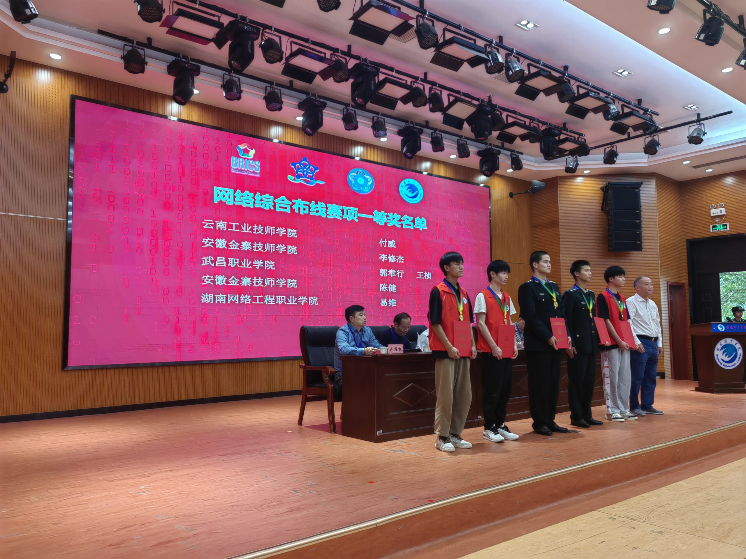 来自于云南工业技师学院付威;安徽金寨技师学院李修杰、陈健;武昌职业学院郭韦行、王桢;湖南网络工程职业学院易维荣获一等奖,为他们取得优异的成绩表示热烈的祝贺。本次网络综合布线赛项的结束不是终点,而是我们各位选手开启新的学习之路的起点,希望通过此次比赛促进技术和技能水平的交流提升。