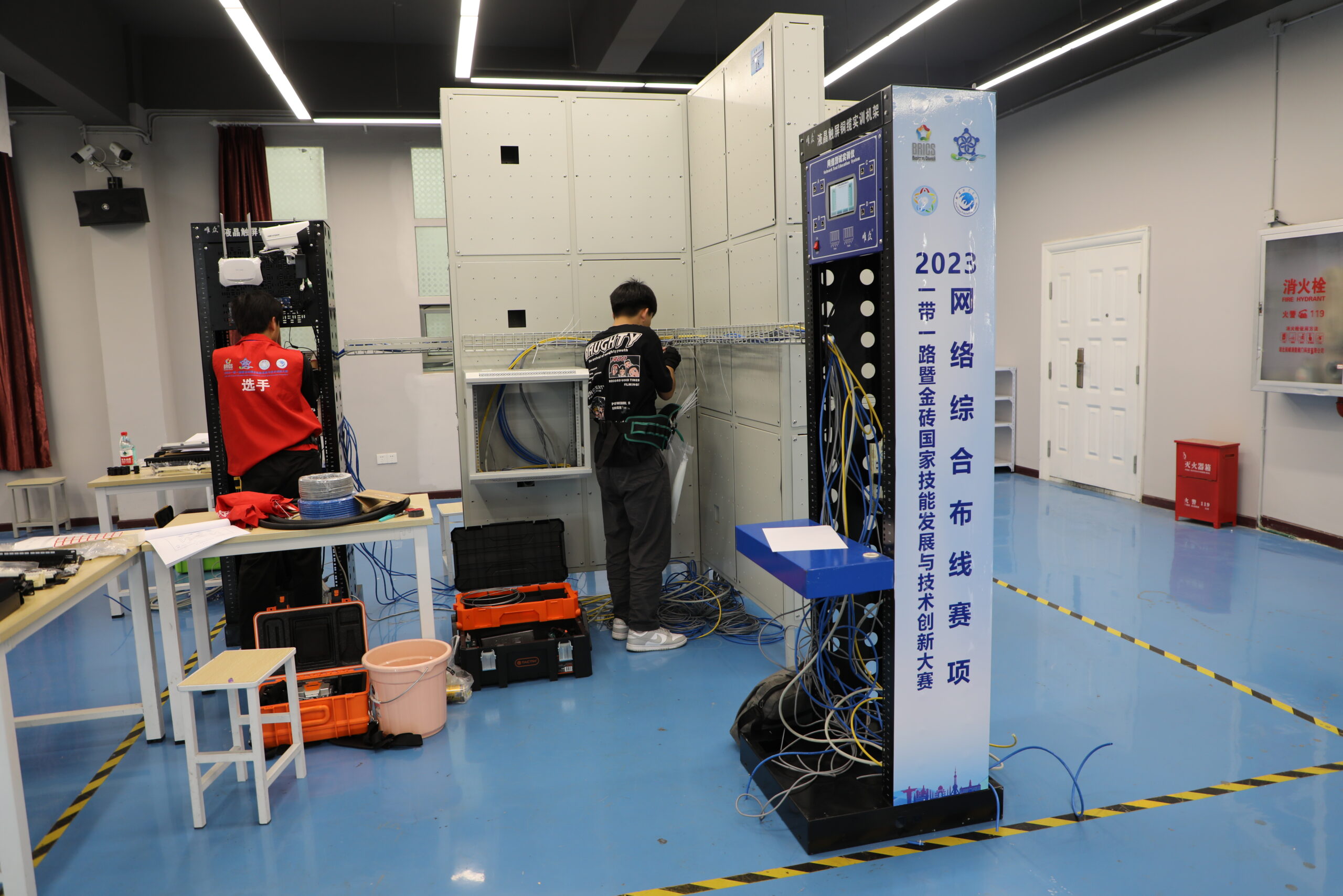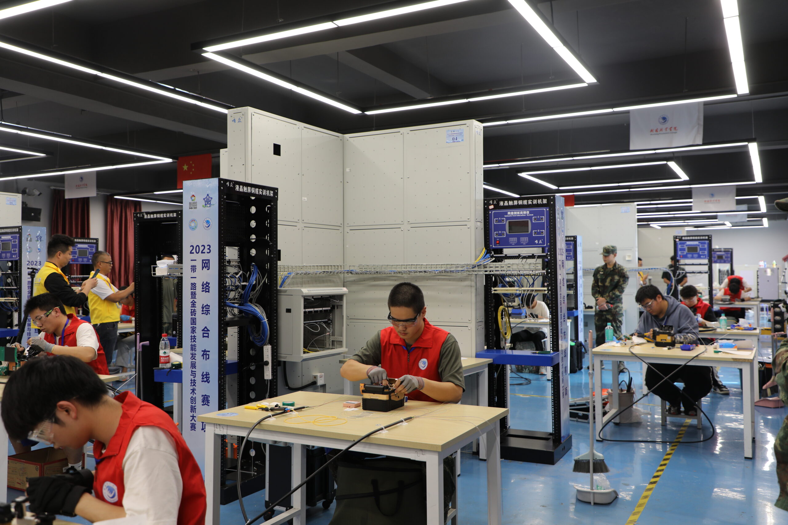 秉持培育大国工匠精神,以突破职业技能比赛为抓手,助推职业教育高质量发展。由金砖国家工商理事会中方理事会、一带一路暨金砖国家技能发展国际联盟、中国科协一带一路暨金砖国家技能发展与技术创新培训中心主办,由武昌职业学院、武汉唯众智创科技有限公司、北京嘉克新兴科技有限公司联合承办的“2023一带一路暨金砖国家技能发展与技师创新大赛之网络综合布线赛项”于11月2日在武昌职业学院举行。