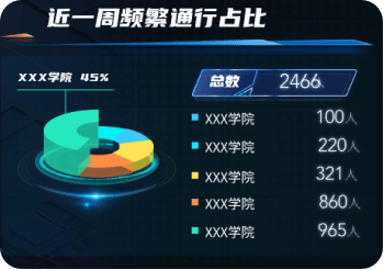 6. 频繁通行占比:平台后台可实现实时数据分析,显示某时间段某二级学院出入校园的频繁度,为各二级学院提供数据保障支撑。