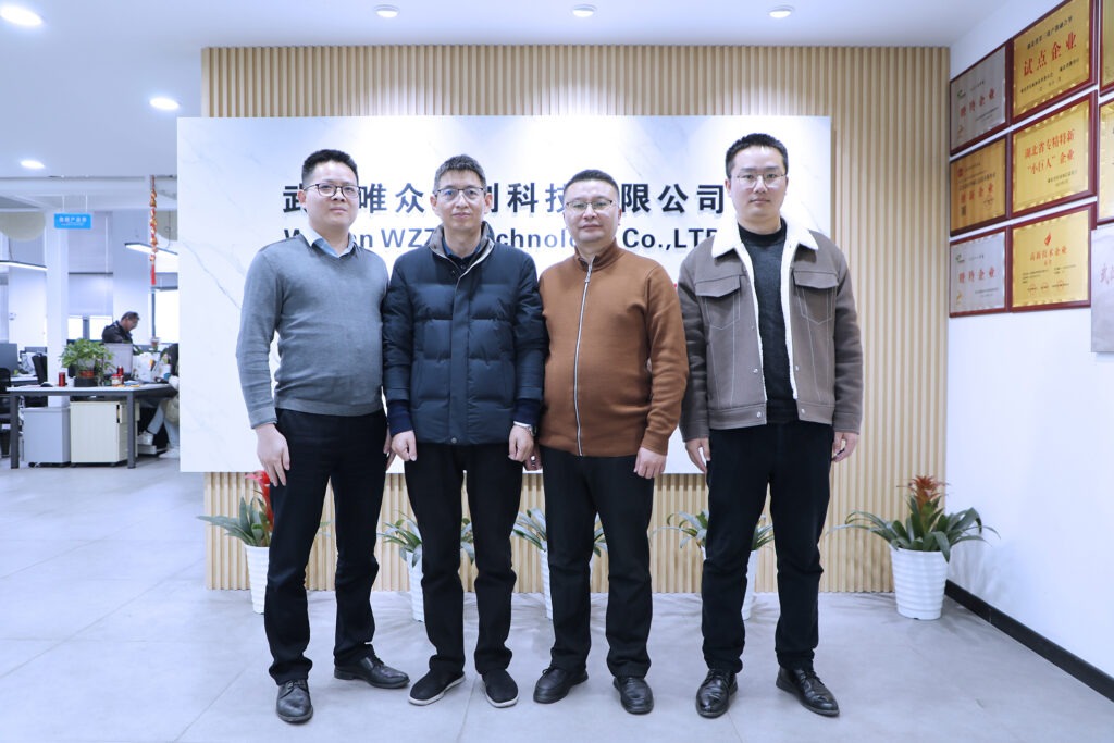 2024年2月29日,贵州腾越科技有限公司的创始人朱和团先生与肖胜先生莅临武汉唯众智创科技有限公司,唯众董事长辜渝傧及董事长助理代西凯进行了热情接待,并带领贵州腾越科技团队全面参观了公司的各项设施及创新产品,双方就如何更好地推进电子信息技术实训教学进行了深入的探讨。