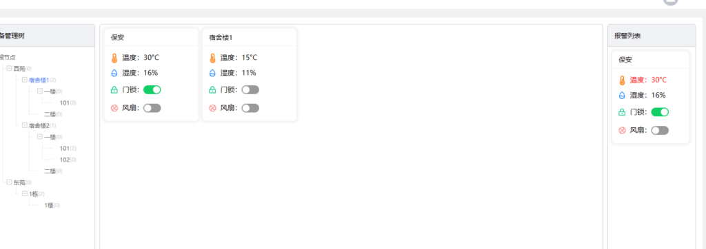 (通过总控,可以实时监控并操作每一台设备,达到报警阈值的设备也会在报警列表中一一展示。)
