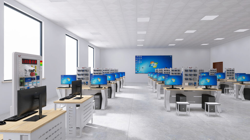 其核心理念是在建设一个标准的物联网电气融合实训室,通过灵活的配置和高效的资源共享,满足多个专业的教学实训需求。这种模式能够显著提升教育资源的利用效率,降低教学成本,同时为学生提供更加接近实际工作环境的实训体验。这个机房需要按照统一的标准进行设计和建设,包括硬件设备、网络环境、软件系统等各个方面,以确保其能够满足不同专业的基本实训需求。在标准化机房的基础上,通过合理的资源配置和共享机制,可以实现多个专业的教学实训要求。例如,可以通过安装不同的软件系统和配置不同的硬件设备,使同一个机房能够满足自动化、软件工程、网络工程、物联网应用技术等多个专业课程的实训需求。此外,还可以通过建立资源共享平台,实现不同专业之间的资源共享和互通有无,进一步提高资源利用效率。
