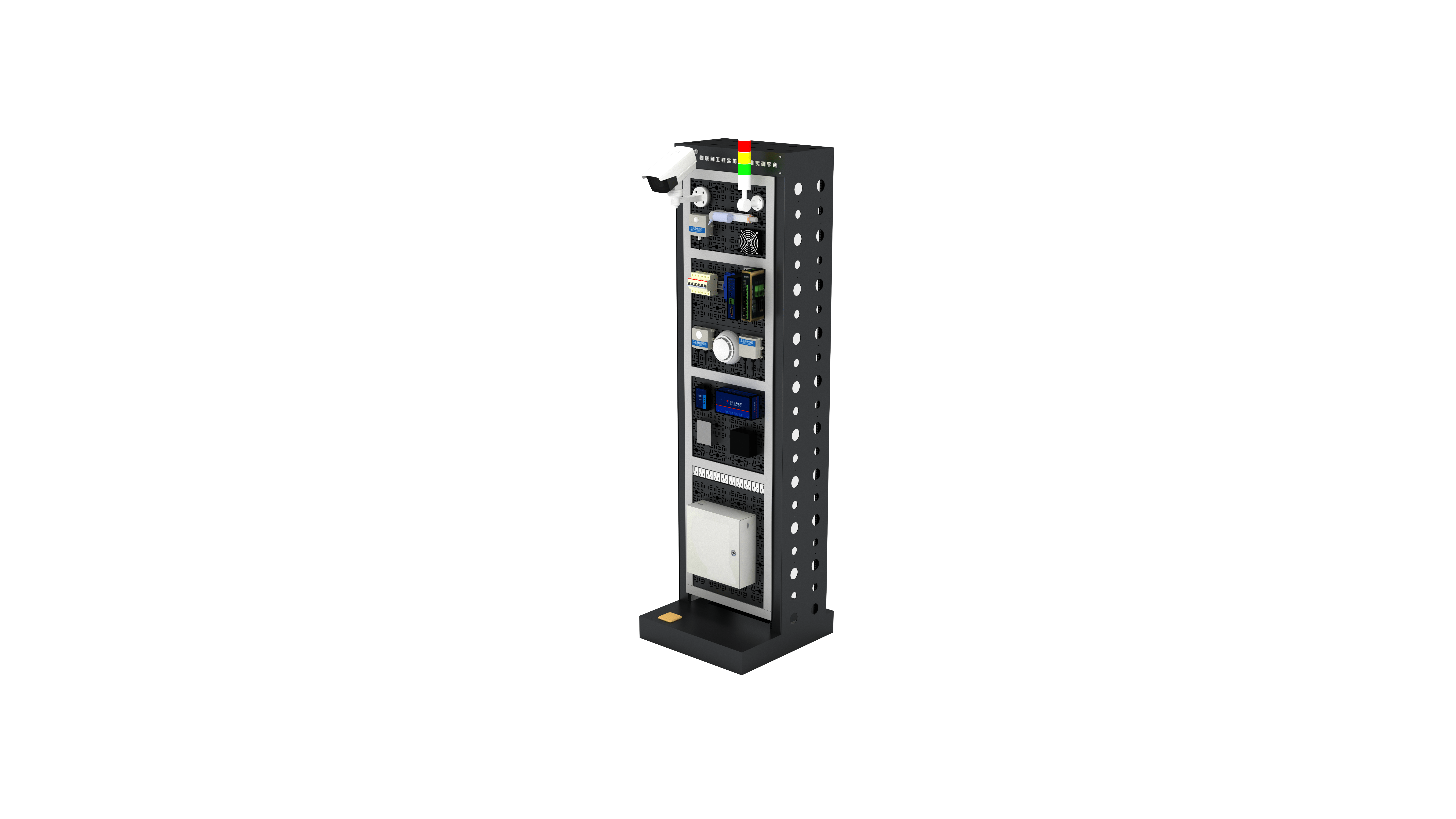 1.装置由铝合金型材框架和多功能安装布线网孔板组成的开放式架构;