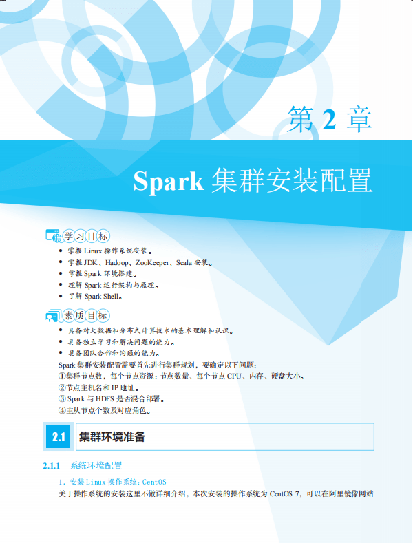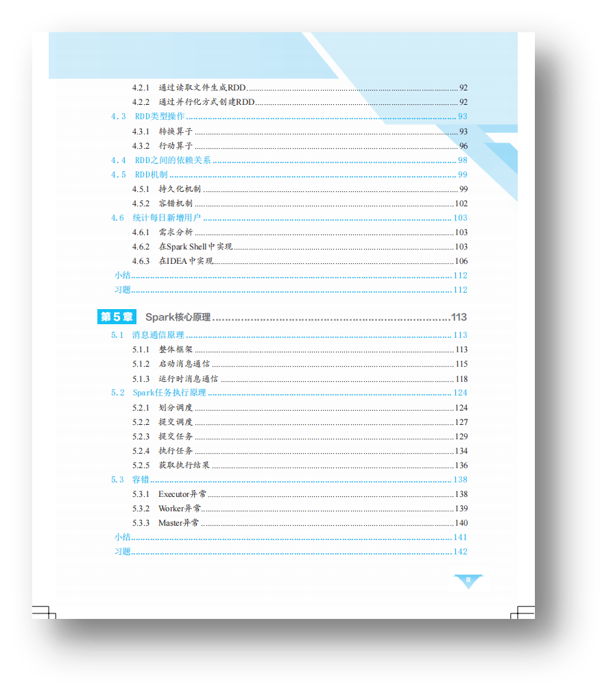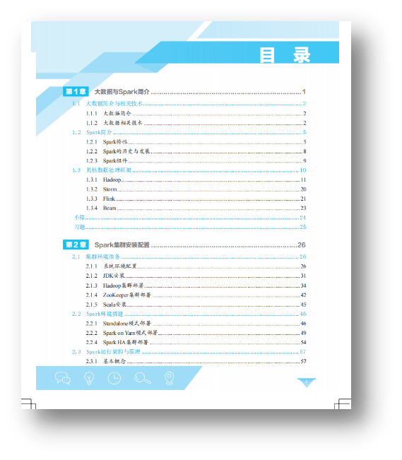 本书中国铁道出版社出版,介绍了Spark 应用程序体系架构的核心技术。全书共分8章:第1章介绍了大数据与Spark 以及其他数据处理框架﹔第2章主要讲解Spark集群的安装配置,包括Standalone、Spark on Yam、Spark HA模式,另外介绍了Spark的运行架构与原理,以及Spark Shell的简单使用;第3章~第6章主要讲解Spark程序入门、弹性分布式数据集、Spark核心原理、Spark SQL处理结构化数据和多数据源操作、Spark Streaming实时计算框架,并包含了实战案例。