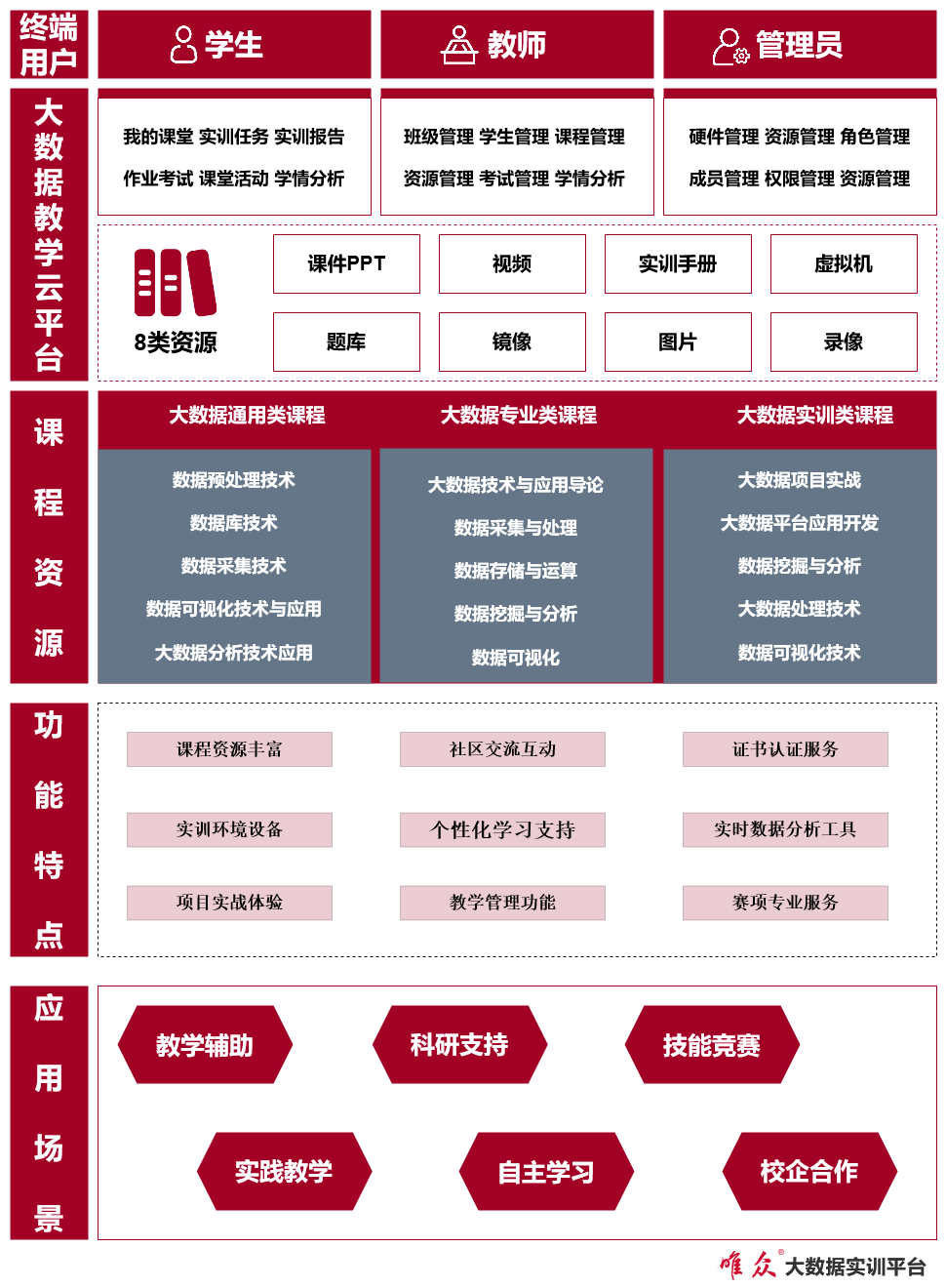 总的来说,唯众大数据实训平台不仅是一个学习工具,更是一个促进教与学互动、提升教学效果的综合平台。
