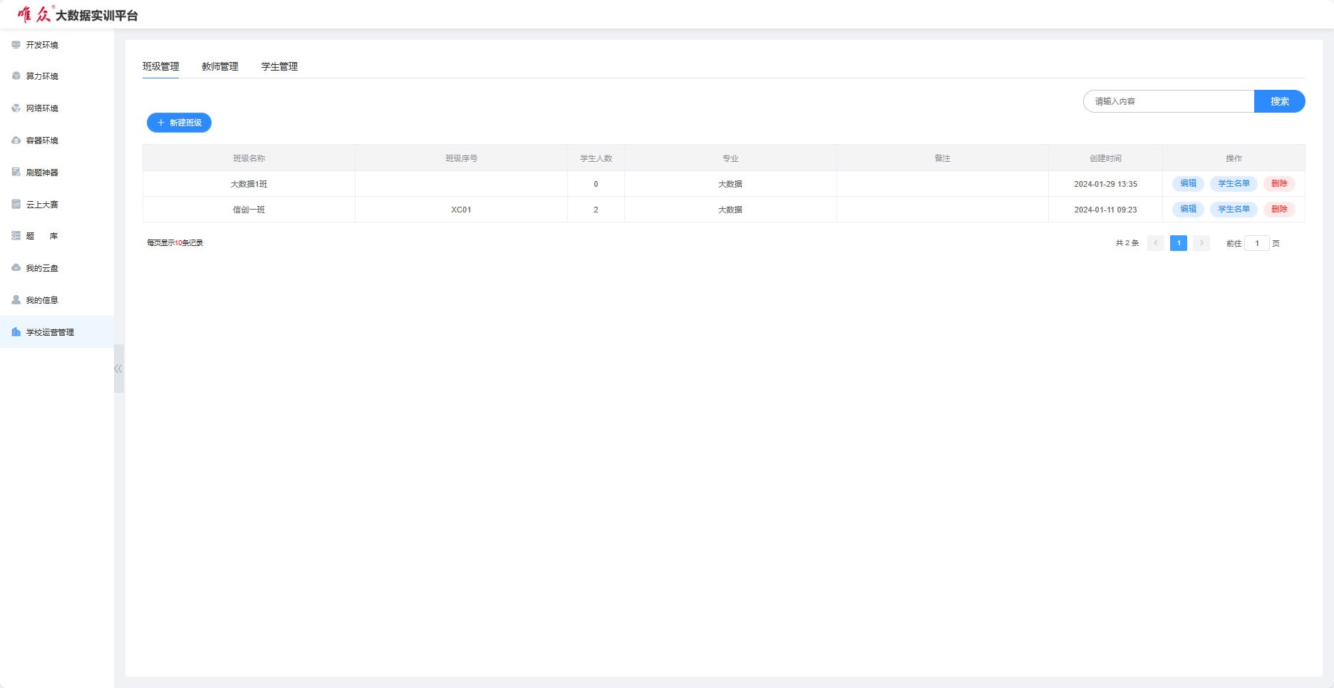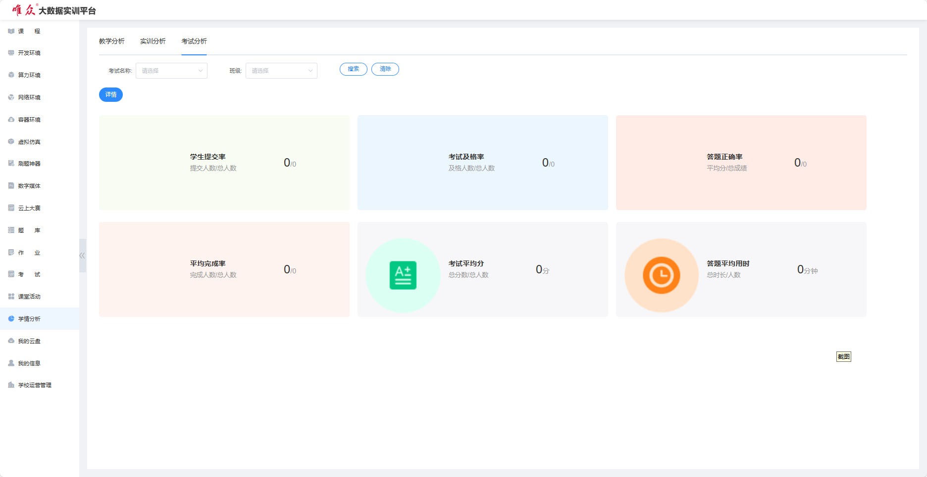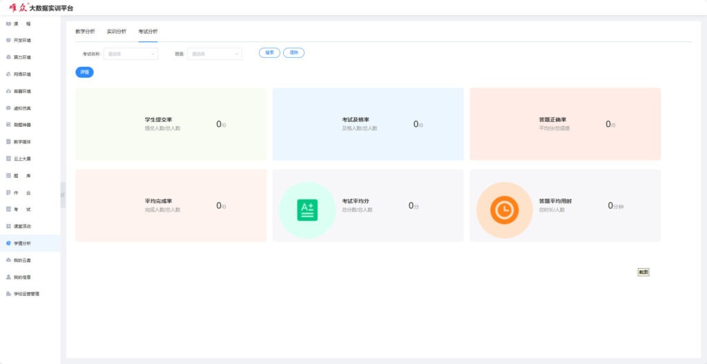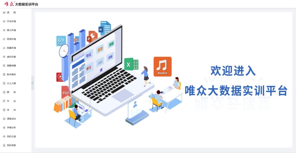为了解决这些问题,唯众研发了一款大数据实训平台。该平台基于稳定、高效的系统架构,实现了数据采集、存储、处理、分析和可视化的全流程管理。同时结合实际应用场景,提供丰富的大数据实验环境和项目案例,帮助学生深入理解大数据技术的原理和应用。通过唯众大数据实训平台,学生可以在实践中学习,提高解决实际问题的能力。