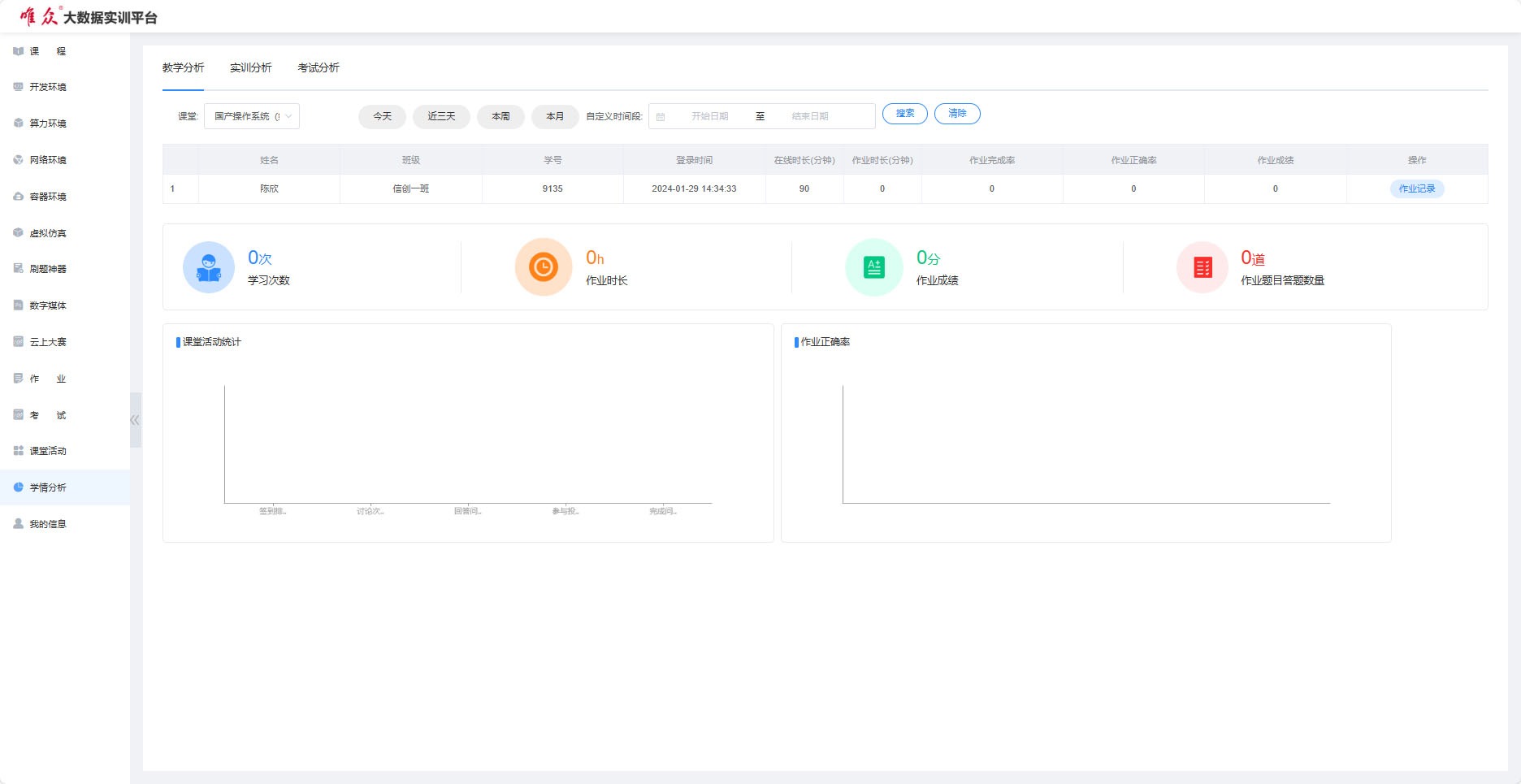 智能分析模块是为教师提供全面的学生学习情况分析工具,旨在通过可视化数据展示,帮助教师更好地了解学生在学习过程中的表现。