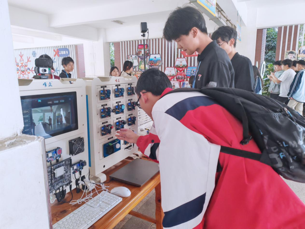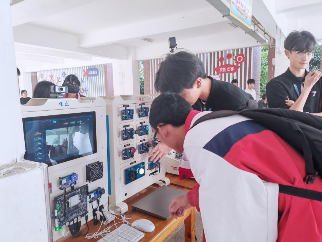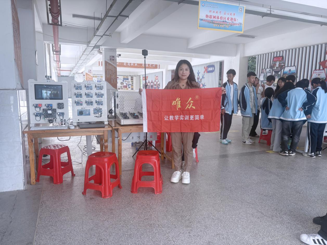 本次“职场体验周”突破传统课堂边界,通过企业实景模拟、行业导师互动、职业技能挑战等多元形式展开,为学生提供了真实的职业体验场景。活动现场,唯众展示了包括“物联网应用开发实训装置”、“人工智能实训装置”、“唯众云课堂”等在内的软硬件实训产品,引来了学校师生和领导的一致围观,同学们也都纷纷进行了实践操作,并表现出了极大的兴趣。