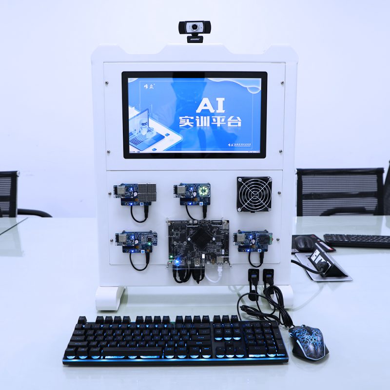 人工智能AI实训平台是一套以“AI+X”为理念的多功能综合教学实训平台,包含了完整的边缘计算人工智能设备的架构。既能满足人工智能实训所需的算法构建、模型训练、模型部署、模型推理等要求,又能将人工智能的模型通过唯众融合云平台和各类的终端节点设备进行联动,让人工智能实训变成看得见、摸得着的典型项目应用。